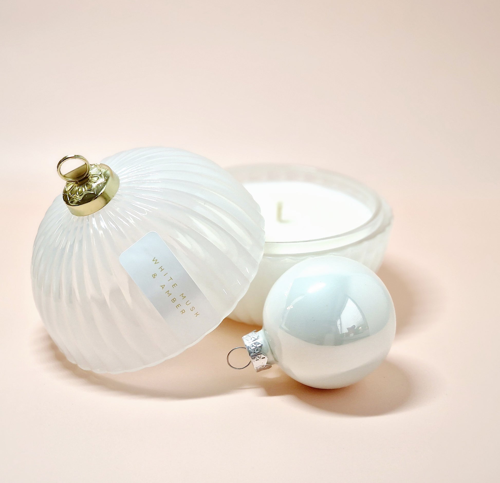 Sojakerze Weihnachtskugel Weiß